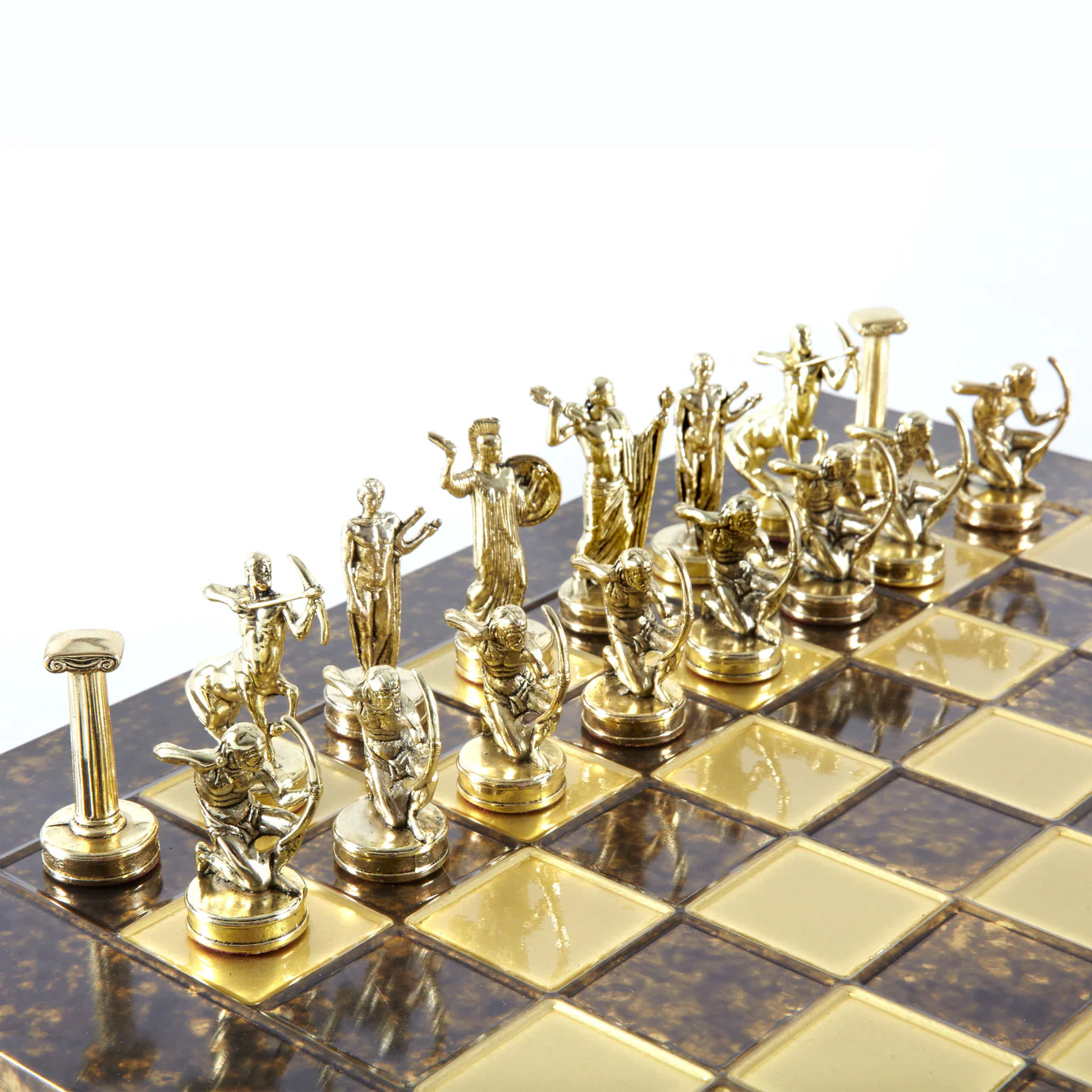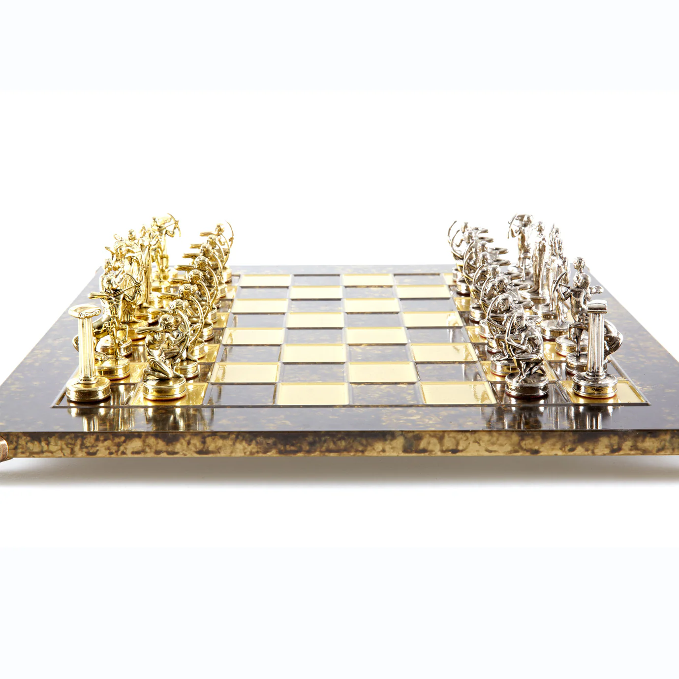 Hercules chess set with gold/silver chessmen and brown/bronze chess board 36 x 36cm